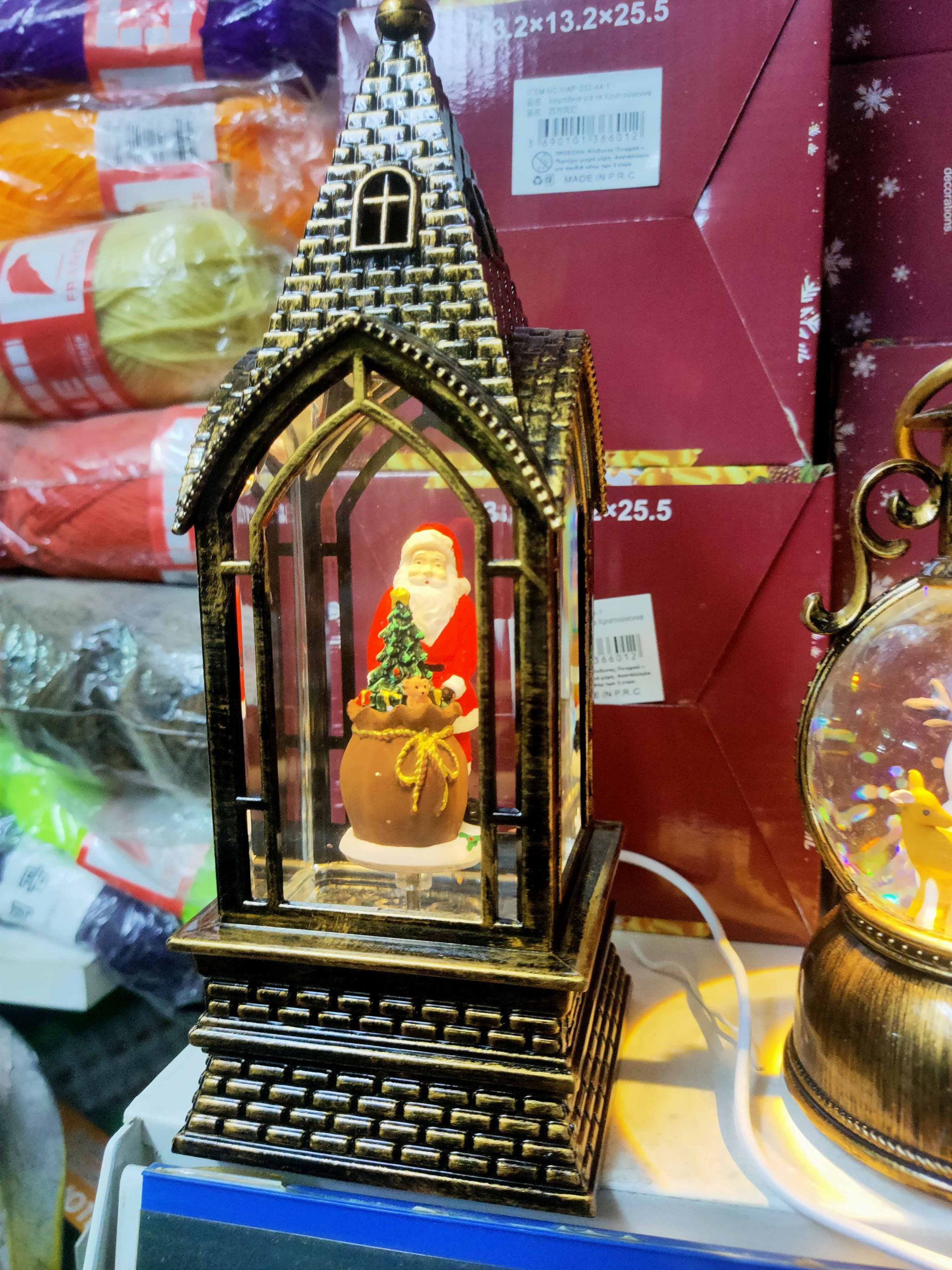 30016 μουσικό κουτί Ρετρό Χριστουγεννιάτικα φανάρια εκκλησια με νερό και χιόνι